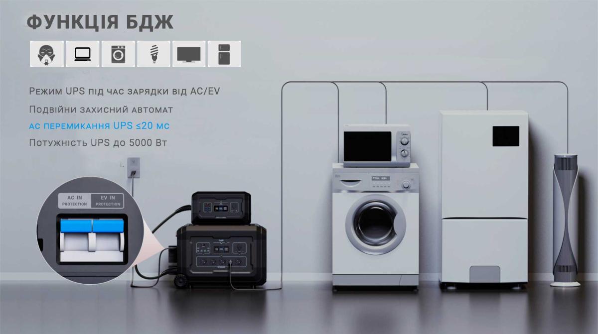Устройство ES3600 может запитать любой прибор в вашем доме. Вы легко можете одновременно питать газовый котёл, холодильник, телевизор, освещение, мобильные гаджеты, а при необходимости параллельно использовать более мощные приборы — электрочайник, микроволновку, электрогриль, фен, духовку